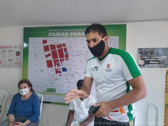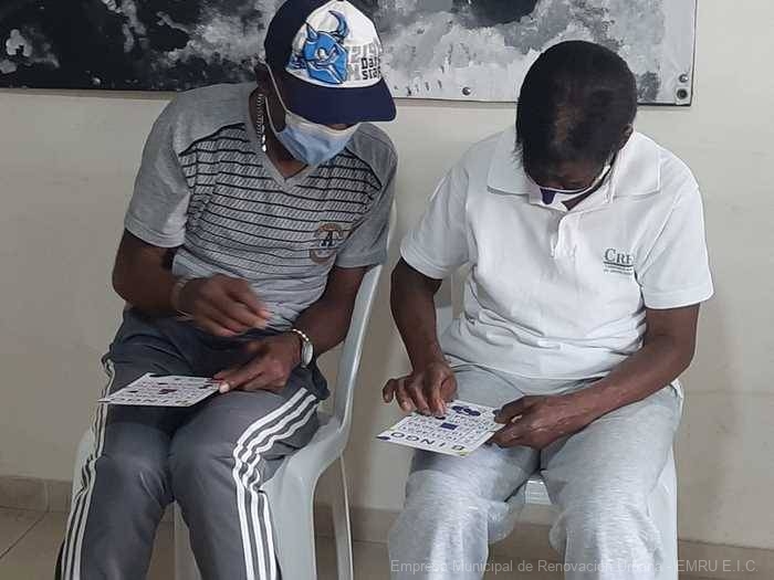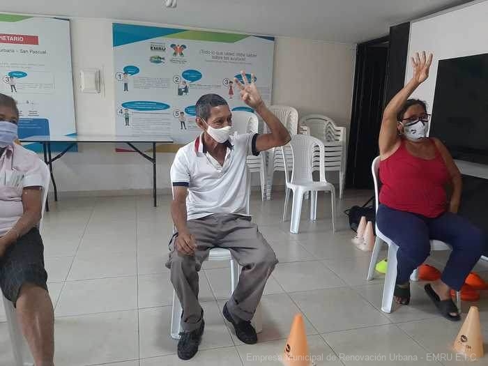Adultos mayores del área de renovación urbana participan en los encuentros de recreación y actividad física en el adulto mayor, liderados por la Secretaría del Deporte y la Recreación, y que se desarrolla en el Punto de Atención a la Comunidad de la Empresa Municipal de Renovación Urbana – EMRU, sede San Pascual.