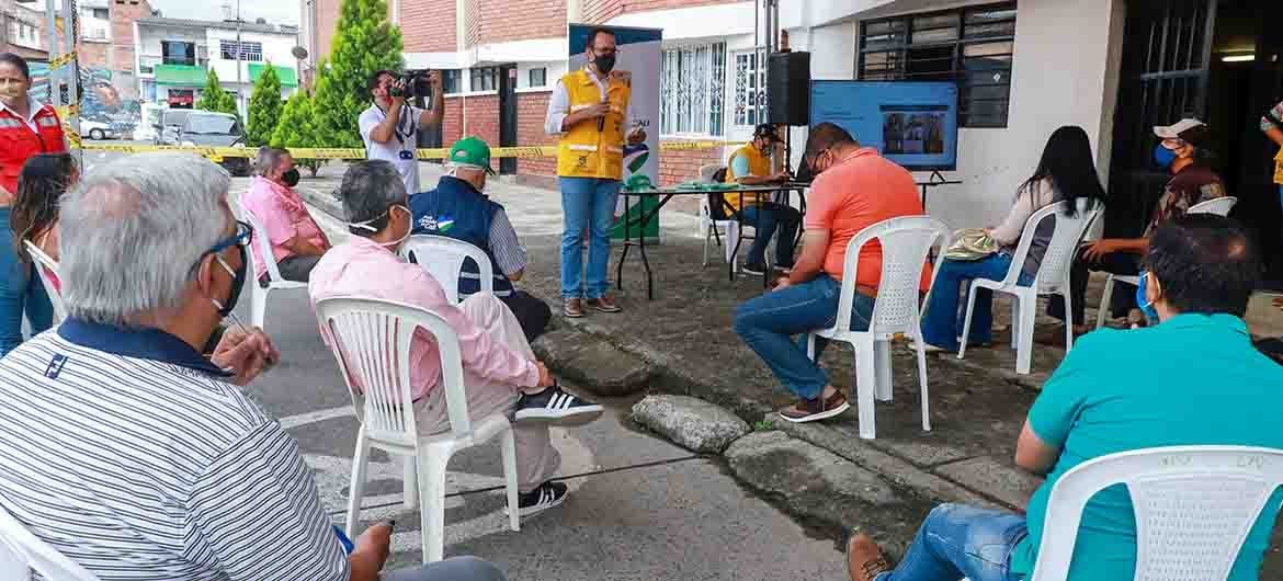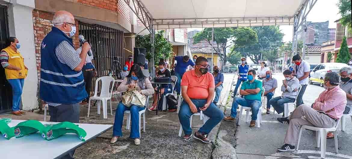 La socialización también fue el espacio para dialogar con la comunidad sobre las diversas dificultades que se ha presentado en el sector y establecer acuerdos de trabajo. En este espacio se entregaron tapabocas, material de promoción y ofreciendo pautas de autocuidado y prevención, siendo la oportunidad para enviar un mensaje a los residentes del área de renovación urbana, a través de la campaña “Guardianes somos todos” que lidera la Alcaldía de Cali.