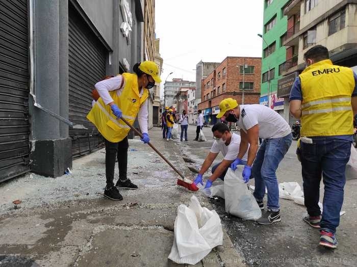 El ingeniero Yecid Cruz Ramírez, gerente de la entidad, junto a su equipo de trabajo, participaron en la jornada cívica de limpieza, convocada por el alcalde Jorge Iván Ospina, con el objetivo de recoger los escombros que dejó la movilización del 28 de abril de 2021.